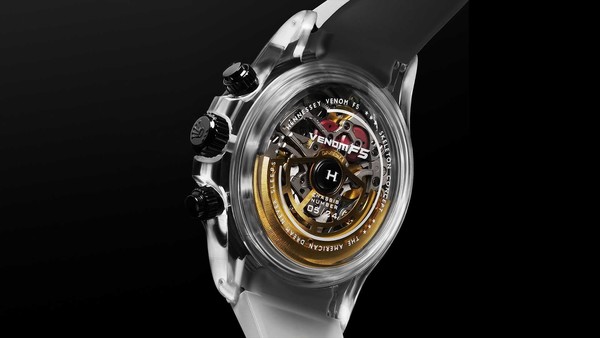 据介绍,这块天价腕表采用蓝宝石表壳,碳纤维表圈上刻有高对比度测速刻度,可测量最高400公里每小时的平均速度。每枚腕表背后都与一个带有底盘编号铭文的毒液F5相对应,周边还刻有“The American Dream Never Sleeps(美国梦永不眠)”的字样。镂空处理的背部进一步将该腕表与轩尼诗超跑联系起来,表带也与车辆的外观颜色相匹配。