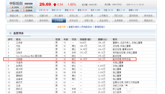 根据东方财富网显示,王晓丽持股45.36万,年薪145.2万。