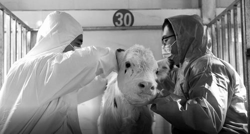 | ①科研人员观察初生克隆奶牛各项指标②初生克隆奶牛个体日前,由西北农林科技大学奶牛种业创新团队培育的克隆奶牛在宁 |