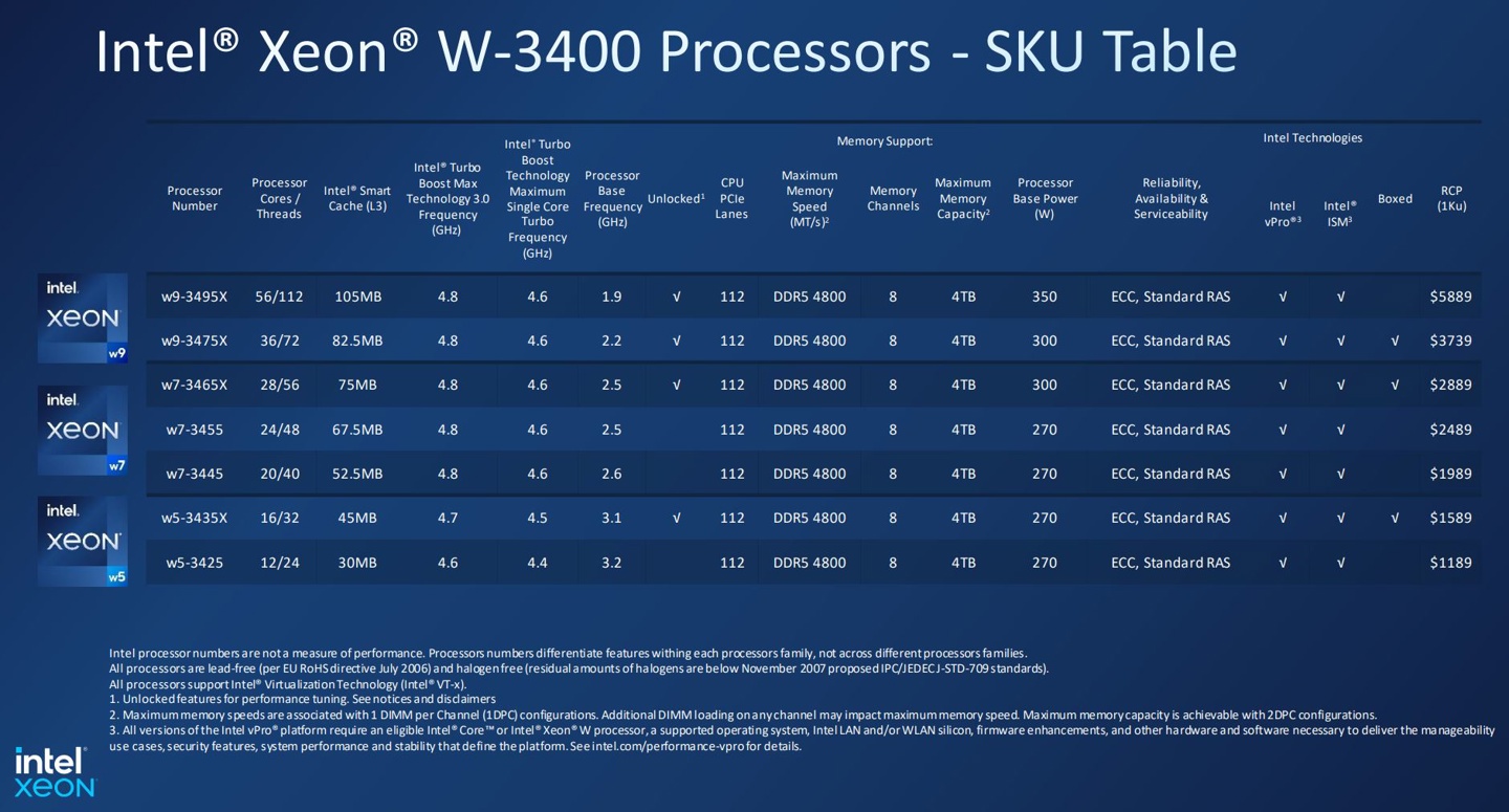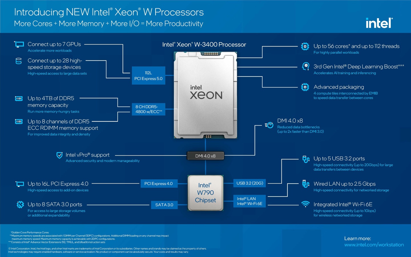 | IT之家 2 月 16 日消息,今天,英特尔推出了全新的英特尔 Sapphire Rapids 至强 W-3400 和英特尔至强 W-2400 系列台式机工作站处理器 |