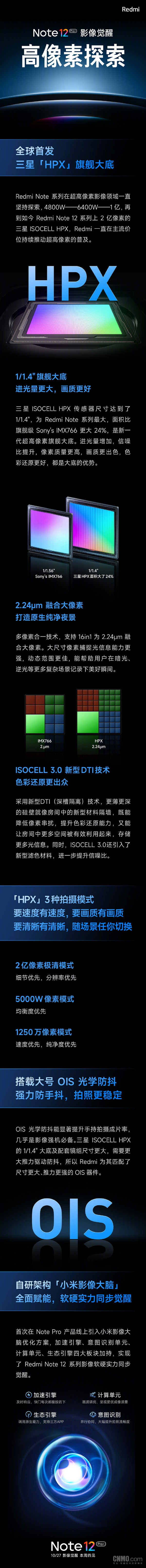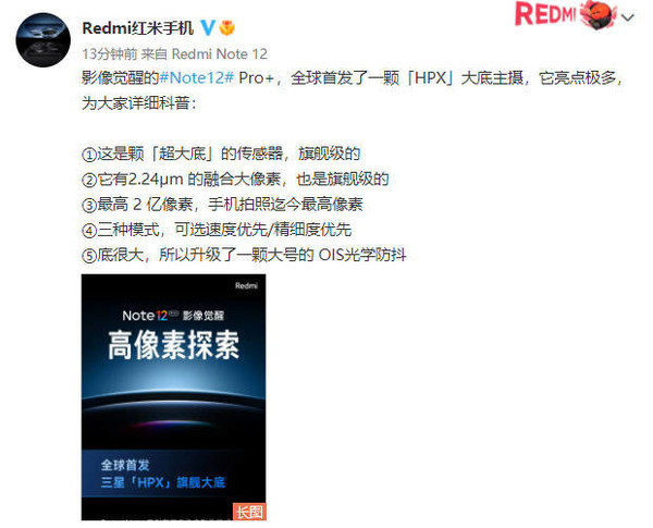 Note12Pro+将全球首发三星“HPX”旗舰大底主摄