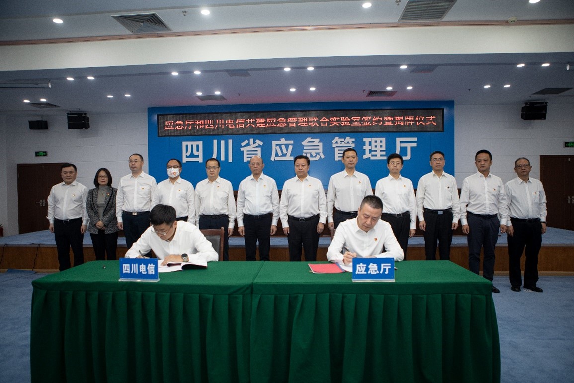 10月28日,四川省应急管理厅与中国电信四川公司举行共建应急管理联合实验室签约暨揭牌仪式。四川省应急管理厅党委委员、副厅长周彤和中国电信四川公司总经理郑成渝出席签约仪式并致辞,双方共同见证应急管理联合实验室揭牌。
