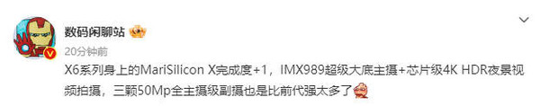 近日,手机中国注意到,根据相关数码博主爆料的爆料信息,OPPO Find X6系列将会带来完成度更高的马里亚纳X芯片,同时配备一英寸的索尼IMX989大底传感器。除了主摄之外,另外两颗副摄也支持拍摄5000万像素的照片,而X5 Pro的一颗长焦副摄是1300万像素。此外,X6系列还支持4K分辨率的HDR夜景视频拍摄。总而言之,Find X6系列相比Find X5系列将会在影像方面进行大幅度地提升。