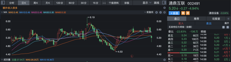 11月14日,通鼎互联(002491.SZ)公告出售全资子公司百卓网络51%股权,次日公司就收到深交所下发的关注函询问相关股权出售事项。出售公告发布后,通鼎互联股价连续两日累计下跌8.61%,截至11月16日收盘,公司股价为5.2元/股。