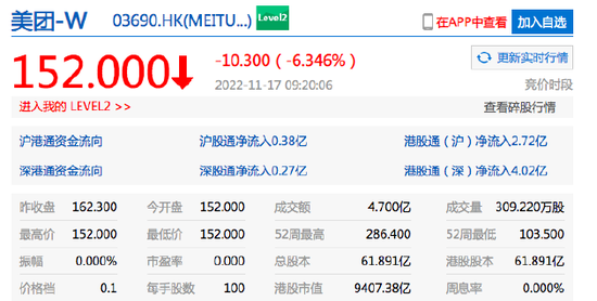 新浪科技讯 11月17日上午消息,香港恒生指数开盘跌1.01%。恒生科技指数跌1.97%。腾讯涨超1%,美团跌超6%,腾讯三季度净利润好于预期,宣布将派发9.58亿股美团股份作为特别中期股息。