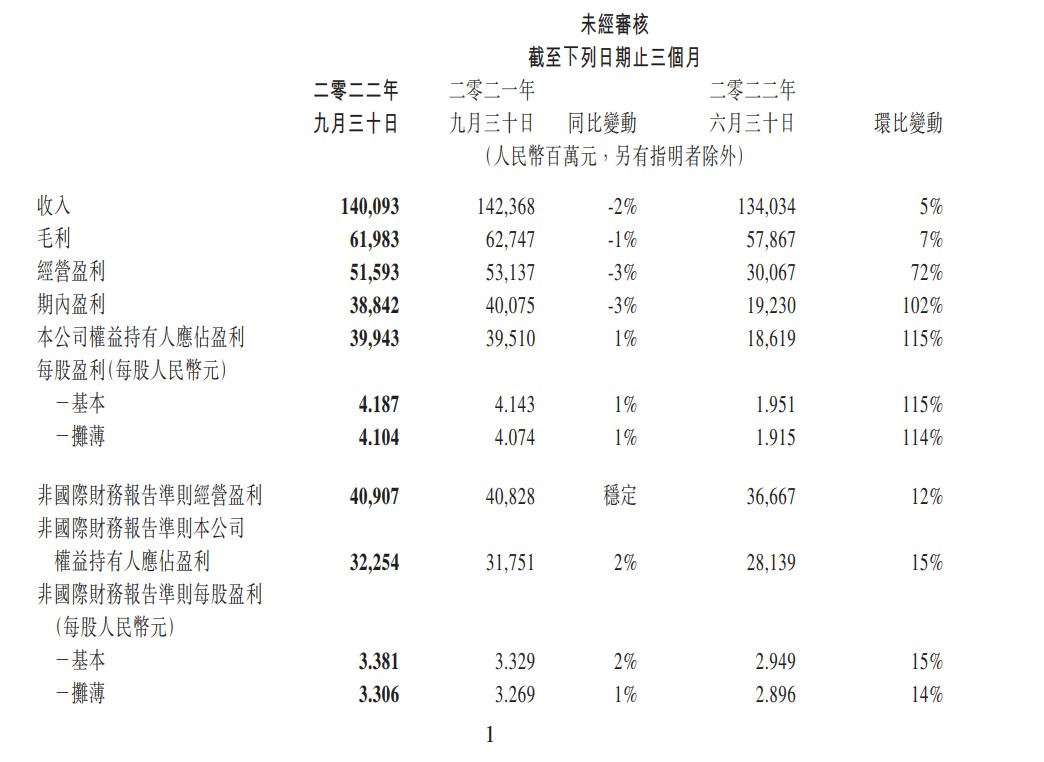 刚发布的2022年Q3财报显示,第三季度,腾讯总收入为人民币1401亿元,同比下滑2%;非标下净利润为323 亿元,同比增长 2%。