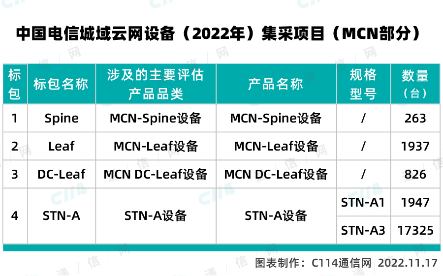 原标题:中国电信2022年城域云网设备(MCN部分)集采:规模22298台,本文由C114通信网发布,现在由科技之家小编2022年11月22日转载分享。