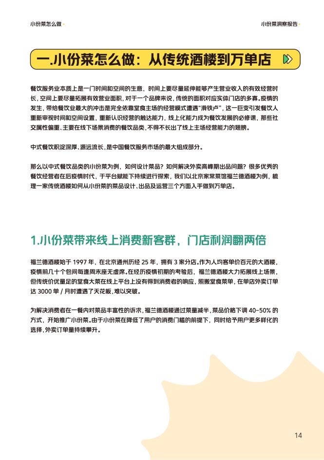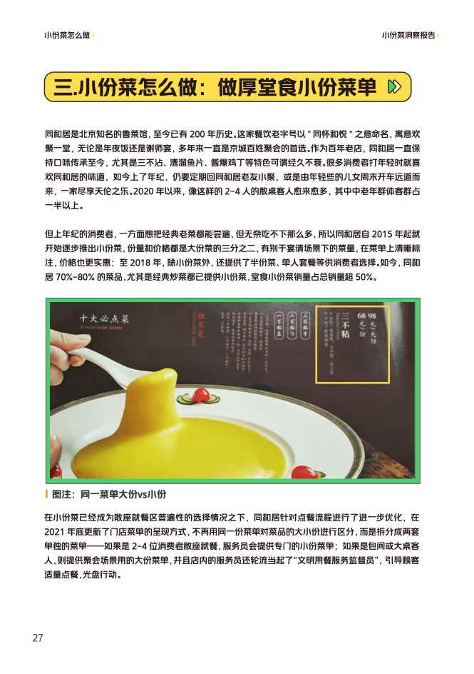 消费者对于“小份菜”的需求日益上涨,同时对于商家来说,也在餐饮经营中找到了新商机。