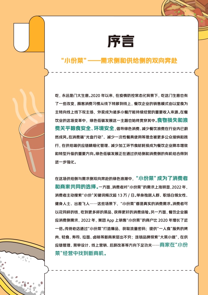 “小份”助力粮食节约 消费者需求与商家供给增长迅速