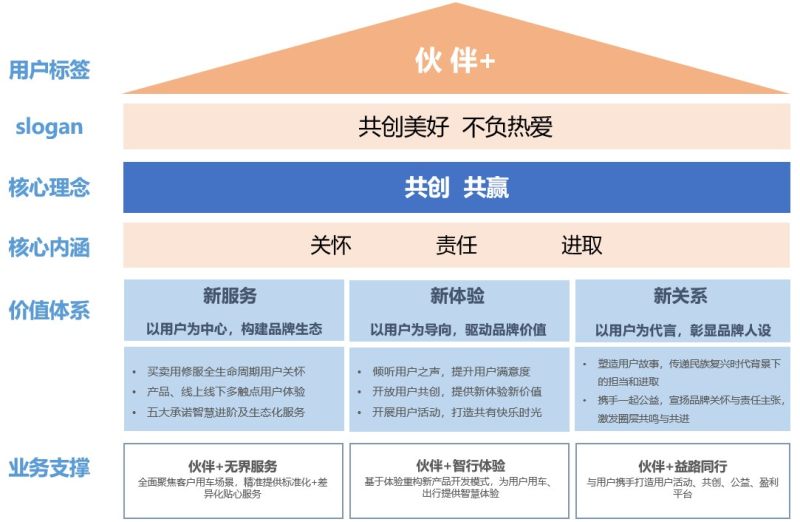 基于向智能低碳出行科技公司转型的战略定位,长安汽车未来客户经营将更加聚焦“体验提升”与“价值创造”,从“伙伴”、“科技”两个方向,赋予可以一种更新的身份,不仅是伙伴,还提供更多的平台,以提升用户体验,主要包含伙伴+无界服务、伙伴+智行体验、伙伴+益路同行三部分。