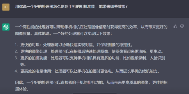 关于处理器对相机功能的影响,ChatGPT答案所涉及的信息也指向了ISP这个硬件。