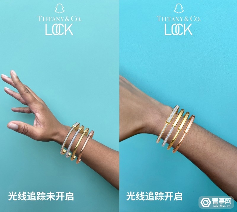 据悉,蒂芙尼Tiffany是首个尝试光线追踪的Snap合作伙伴,他们首次展示的产品是Look手镯。