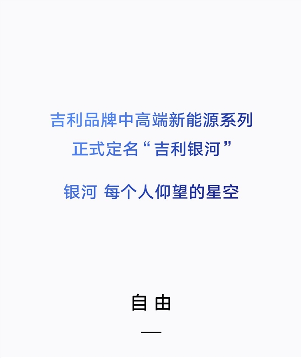 | 2月16日,快科技从吉利官方获悉,该品牌旗下中高端新能源系列正式定名为“吉利银河”,同时,其将于2月23日在杭州亚运会 |